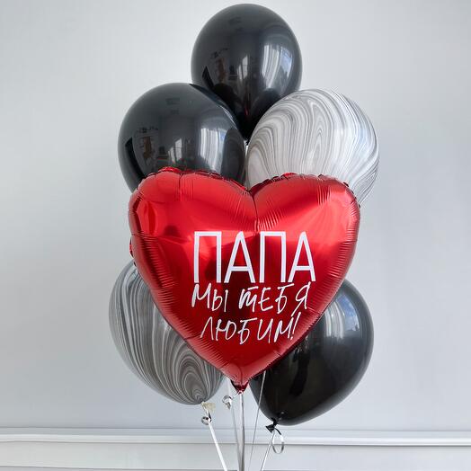 В стоимость входит: Шар латексный однотонный - 3 шт Шар латексный хром - 3 шт Шар фольгированный 45 см с надписью- 1 шт Грузик - 1 шт Пакет для шаров - 1 шт Цена указана с учётом наполнения гелием и обработки